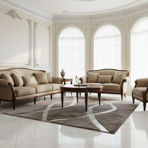 Gri zemin üzerine silver çizgi desenleriyle tasarlanan bu peluş halı, akıcı desen yapısı ve dengeli renk geçişleriyle mekâna modern ve ferah bir görünüm kazandırır. Yumuşak hatlarla ilerleyen çizgiler yüzeyde hareket hissi oluştururken, nötr gri ton mekânla kolay uyum sağlar.