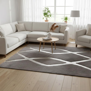 Gri Zeminli Silver Çizgi Desenli Peluş Halı – Yumuşak Dokulu, Modern ve Dekoratif Halı