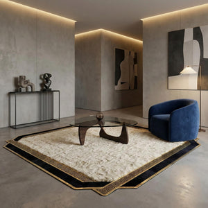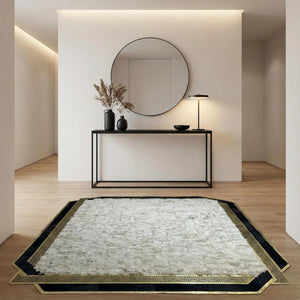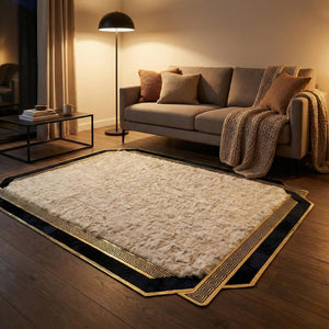 Doğal Toscana kürkünden üretilen bu salon halısı, açık krem zemin rengi ve siyah ile altın tonlarının zarif birleşimiyle modern yaşam alanlarına sofistike bir karakter kazandırır. Yumuşak ve ipeksi kürk dokusu, halıya doğal bir hacim ve konfor hissi katarken sade renk geçişleri mekânda dengeli ve şık bir görünüm oluşturur.