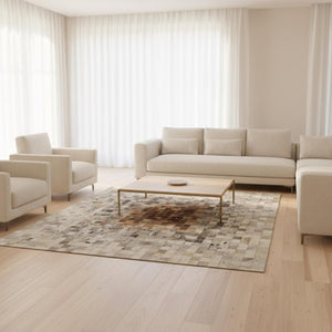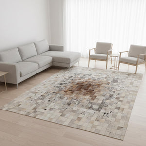 Bej ve Kahverengi Tonlu Dana Derisi Patchwork Halı