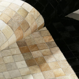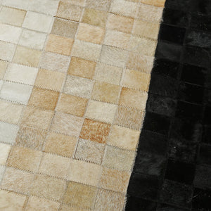 Bej Siyah Doğal Dana Derisi Patchwork Halı