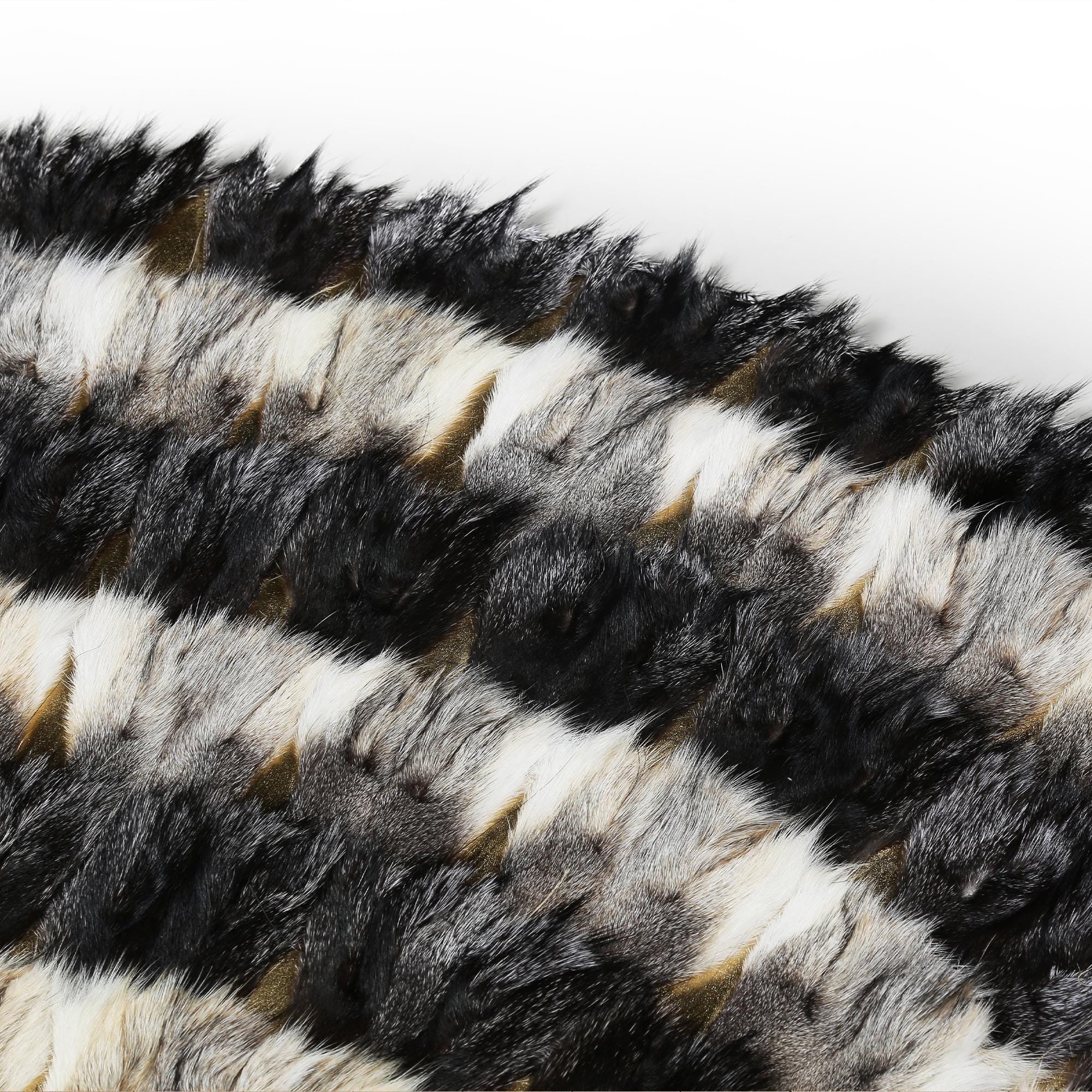 Yuvarlak Siyah Beyaz Halkalı Tilki Kürkü Halı – El Yapımı Doğal Kürk Halı, Lüks Dekoratif Yuvarlak Salon Halısı
