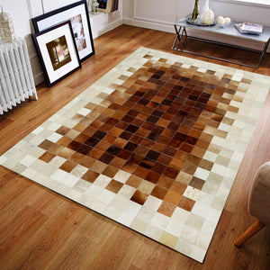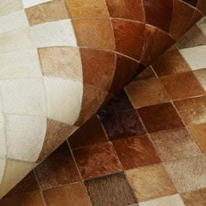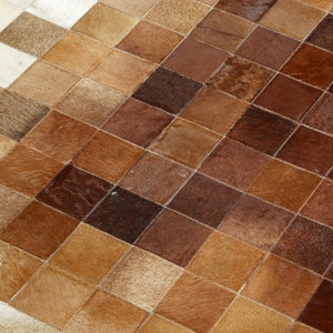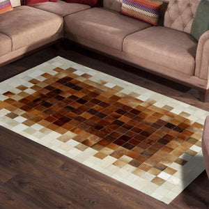Kahverengi Krem Degrade Patchwork Dana Derisi Halı | El Yapımı Hakiki Deri Halı