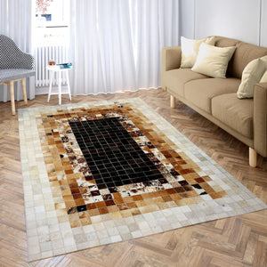 Bej Kahverengi Doğal Dana Derisi Patchwork Halı
