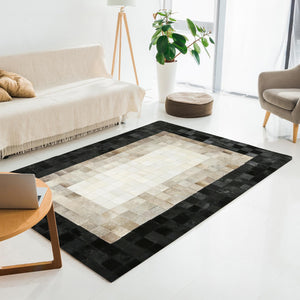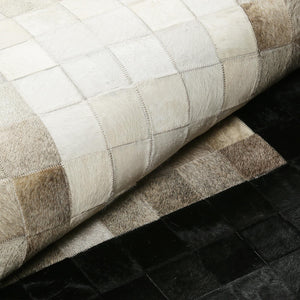 Bej Siyah Dana Derisi Patchwork Halı – El Dokuma Hakiki Deri Şık Giriş Halısı