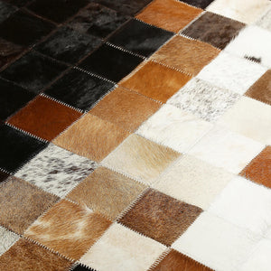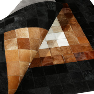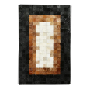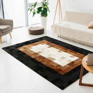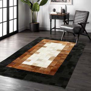 Siyah Kenarlı Kahverengi ve Krem Dana Derisi Halı