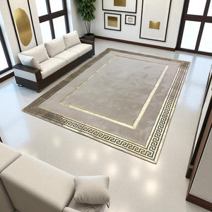 Altın desenleriyle süslenen bu peluş halı, lüks ve klasik stil arayanlar için özel olarak tasarlanmıştır.