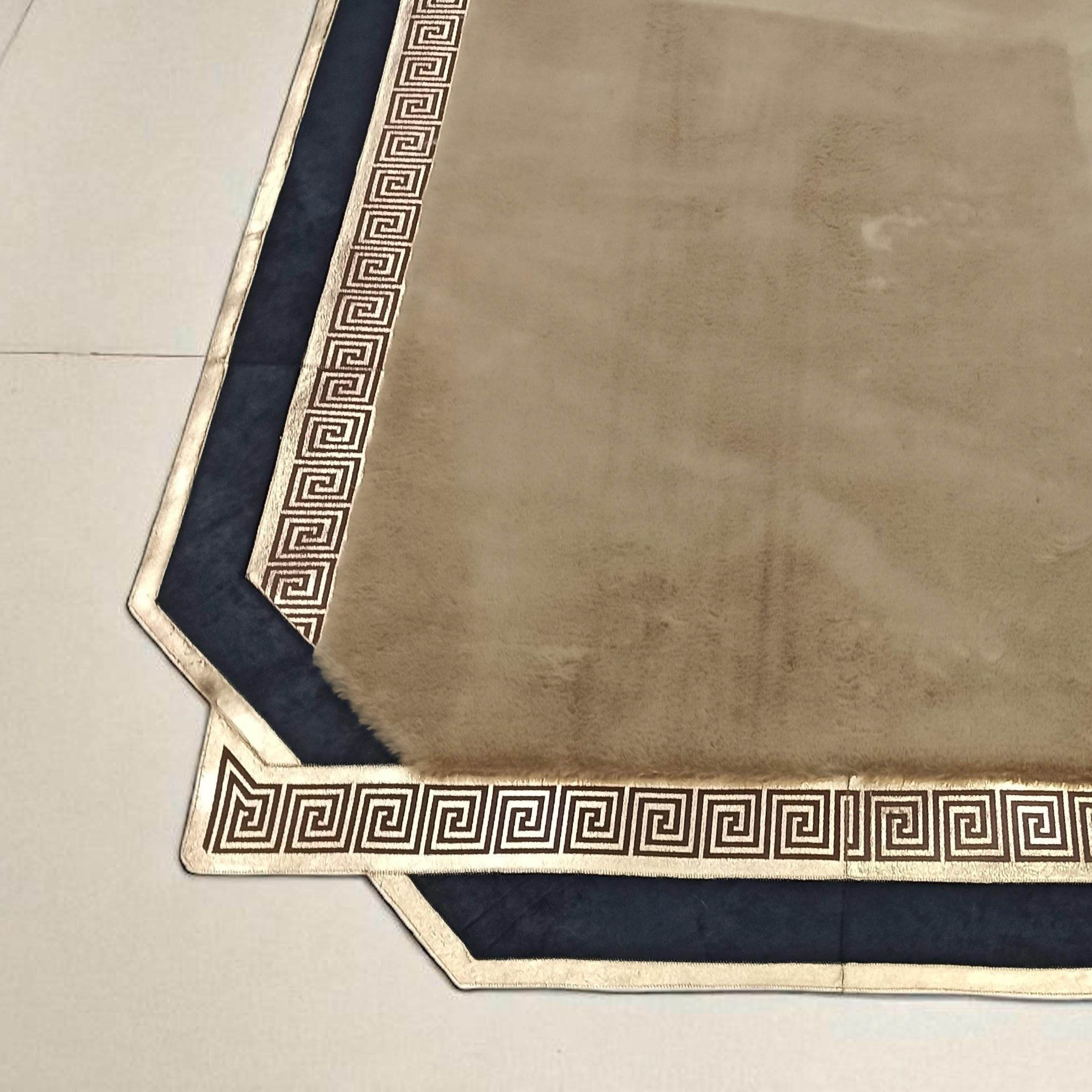 Altın ve Siyah Bordürlü Açık Kahverengi Peluş Halı – El Yapımı Şık ve Yumuşak Salon Halısı