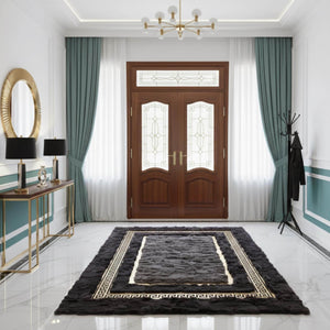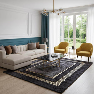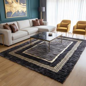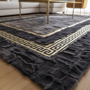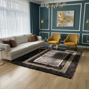 Altın Bordürlü Antrasit Gri Rex Tavşan Kürkü Salon Halısı – Modern ve Lüks Tasarım