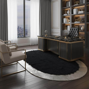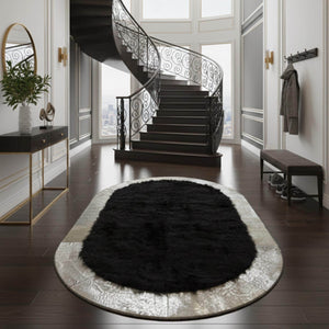 Oval Siyah Toscana Kürk Halı – Zarif Çerçeveli Prestijli Tasarım