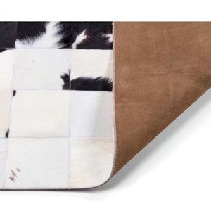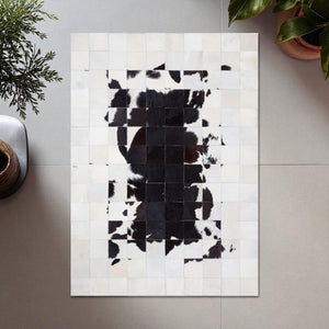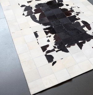 Siyah, Beyaz Dana Derisi Patchwork Halı