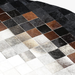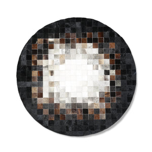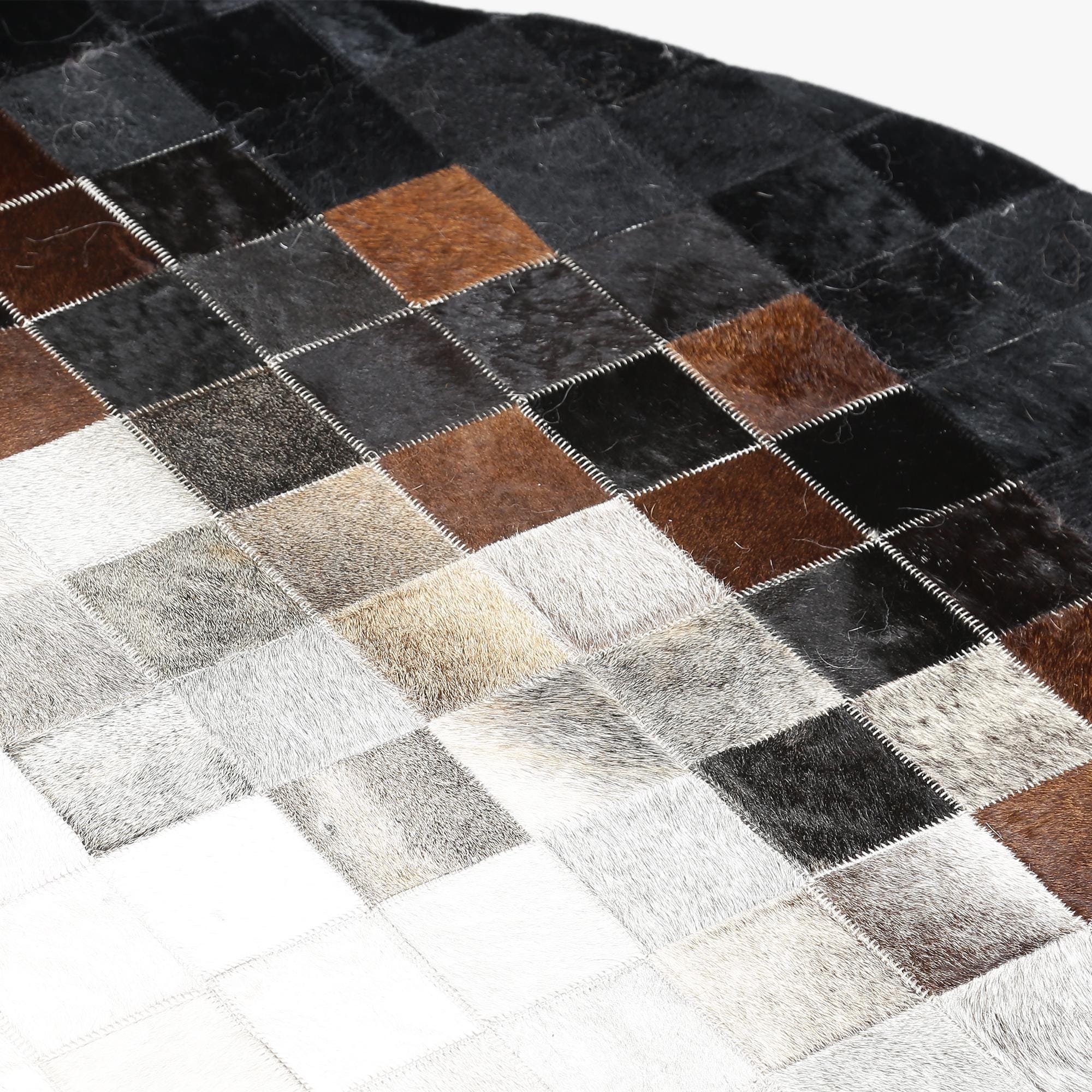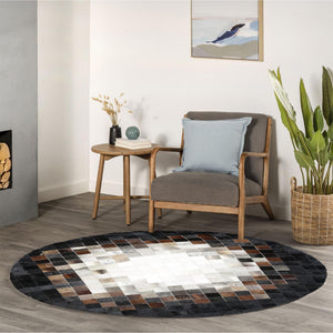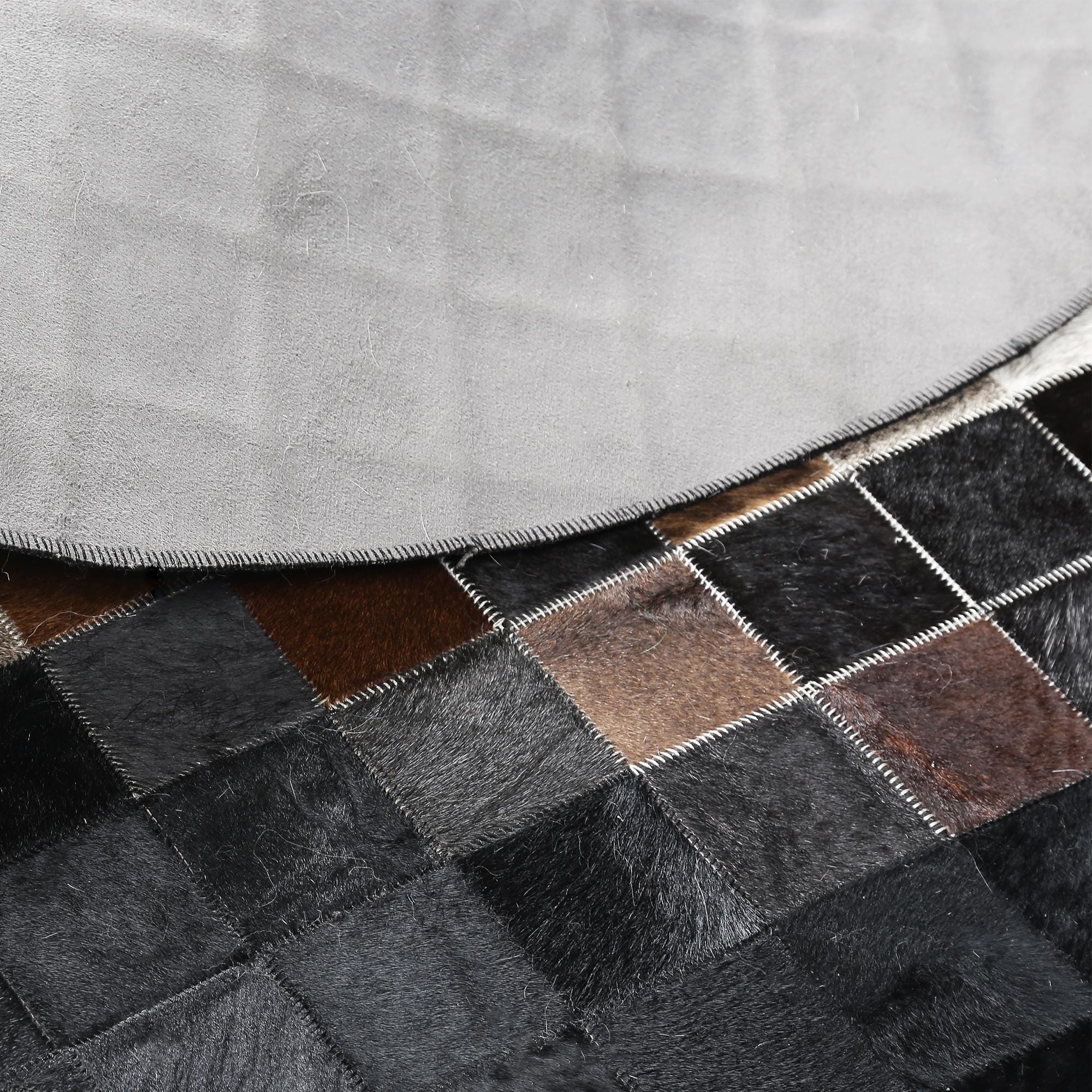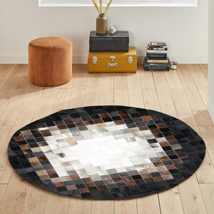 Siyah ve Beyaz Kare Desenli Yuvarlak Dana Derisi Halı - Lüks Salon Halısı