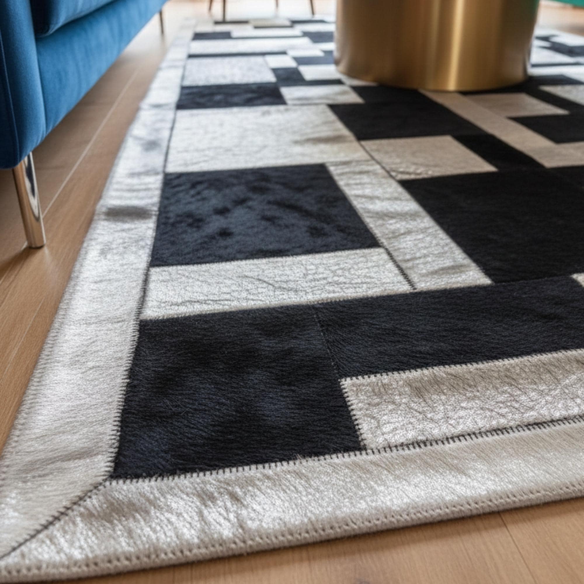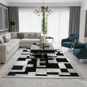 Siyah ve Beyaz Tonlu Dana Derisi Patchwork Halı