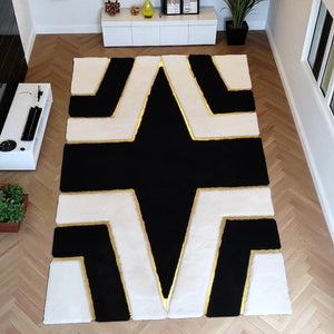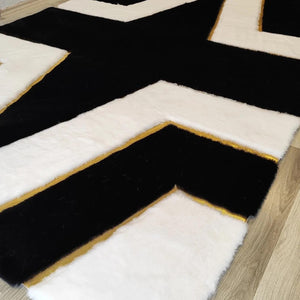 Beyaz ve Siyah Tonlarında Yumuşak Peluş Halı - Şık Salon Halısı