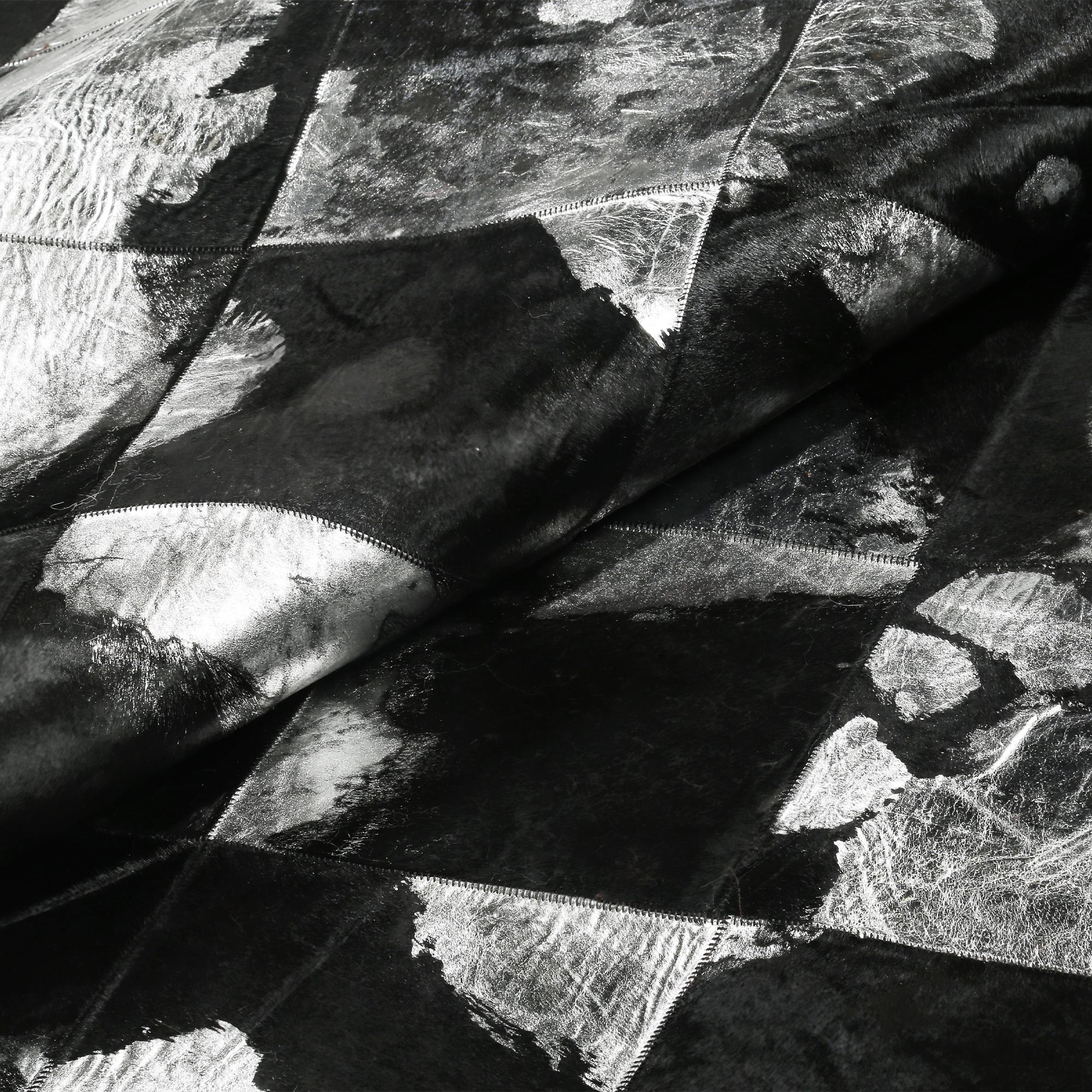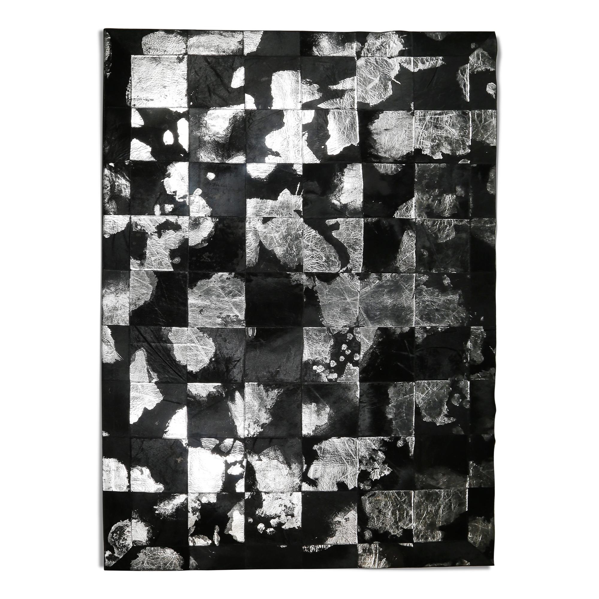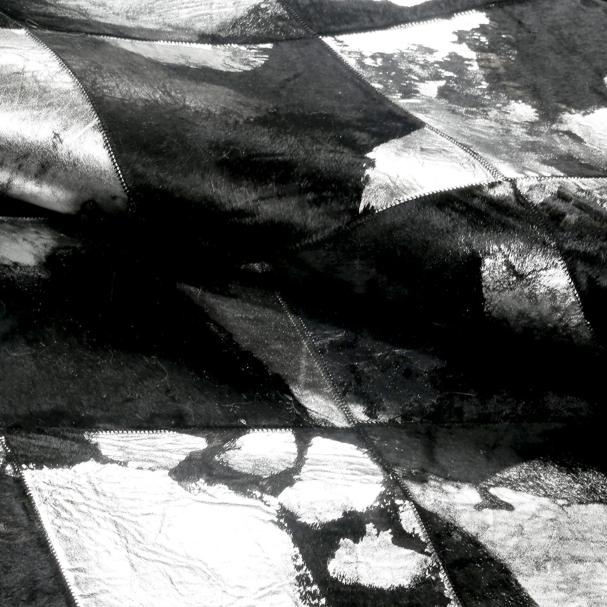 Siyah ve Gümüş Dana Derisi Patchwork Halı