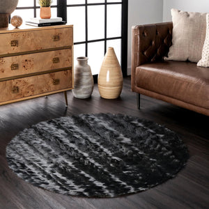Yuvarlak Siyah Tilki Kürkü Halı – El Yapımı Doğal Kürk Halı, Lüks Dekoratif Yuvarlak Halı, Modern Salon Halısı