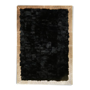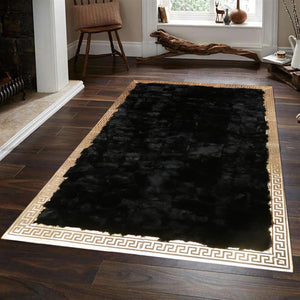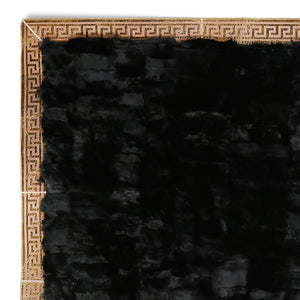 Lüks Altın Şeritli Siyah Rex Tavşan Halısı - Şık Salon Halısı