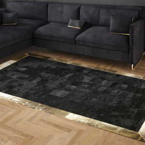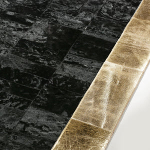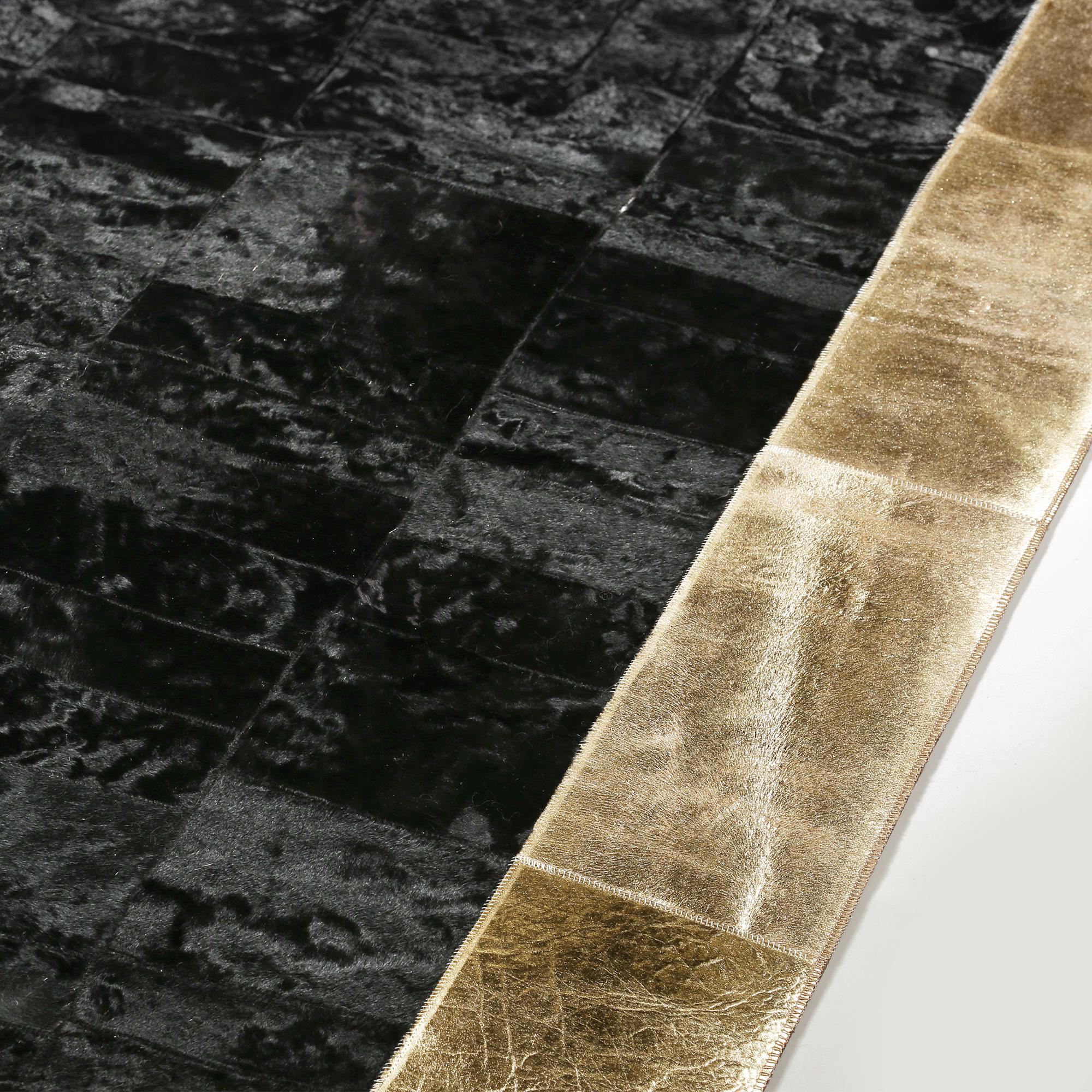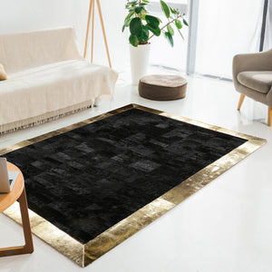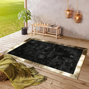 Siyah Altın Renkli Dana Derisi Patchwork Halı – El Yapımı Hakiki Deri Lüks Giriş Halısı