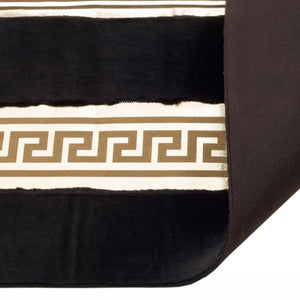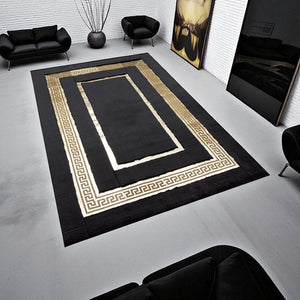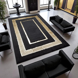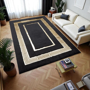 Altın Bordürlü Şık Siyah Peluş Halı - Kaymaz Yumuşak Salon Halısı