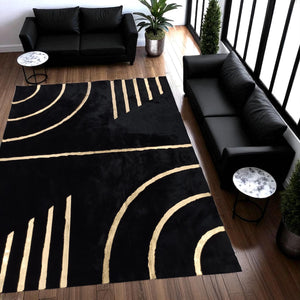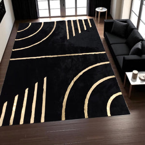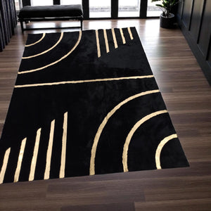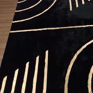 Modern Desenli Altın ve Siyah Renkli Peluş Halı