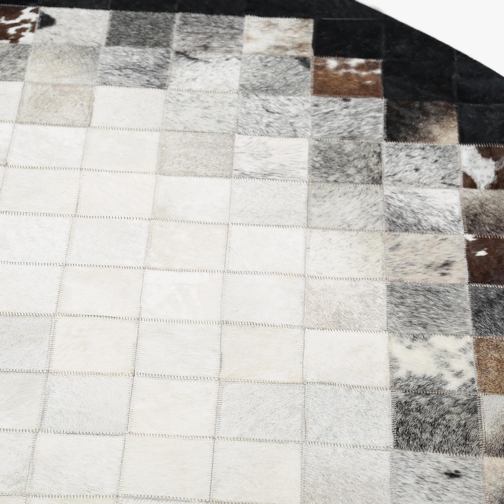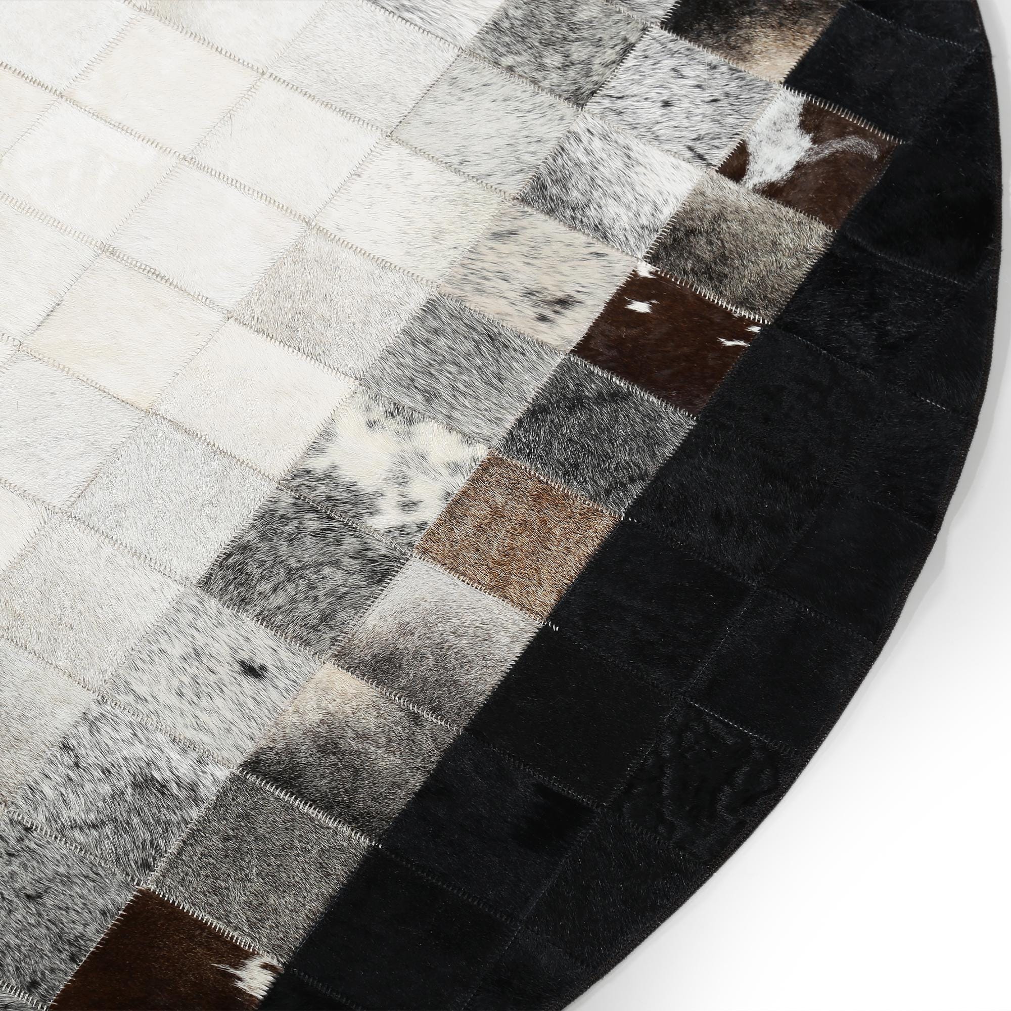 Siyah Gri Beyaz Yuvarlak Dana Derisi Halı - Kaymaz Geniş Alan Halısı