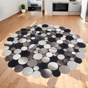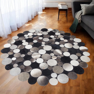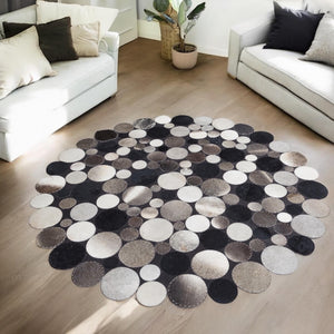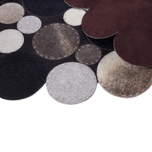 Siyah Gri Puantiyeli Yuvarlak Dana Derisi Halı