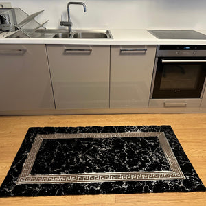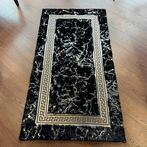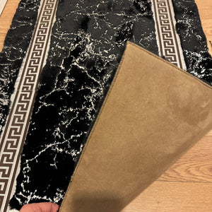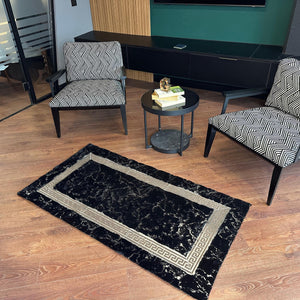 Siyah Mermer Desenli Yumuşak Peluş Halı – El Yapımı Modern ve Şık Yumuşak Halı