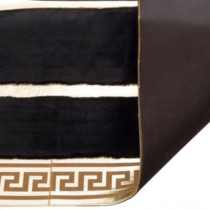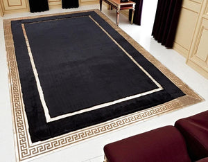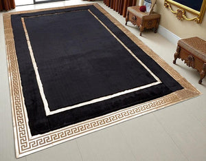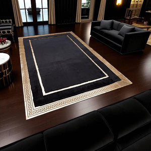 Altın Bordürlü Siyah Peluş Halı – El Yapımı Yumuşak ve Şık Salon Halısı