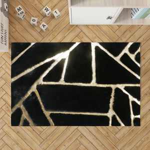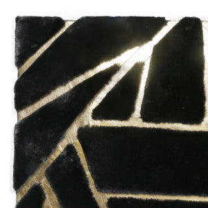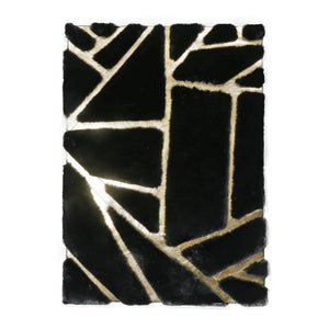 Altın Detaylı Siyah Yumuşak Peluş Halı – Modern ve Şık Yumuşak Halı