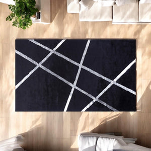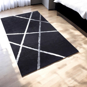 Gümüş Detaylı Siyah Peluş Halı - Dekoratif Salon Halısı