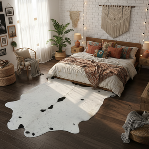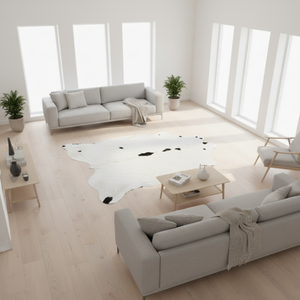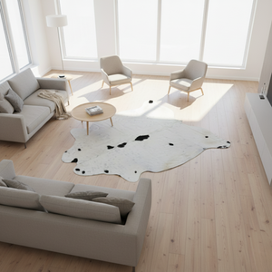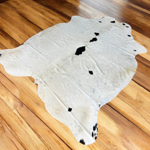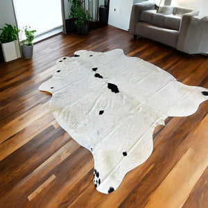 Siyah Benekli Beyaz Hakiki Dana Derisi Post Halı 169 x 210cm – El Yapımı Gerçek Deri Halı