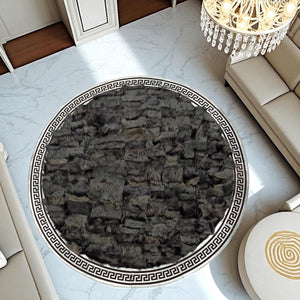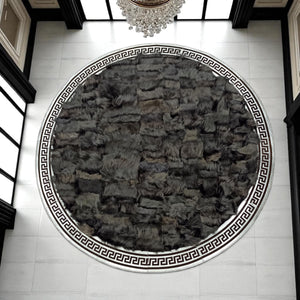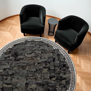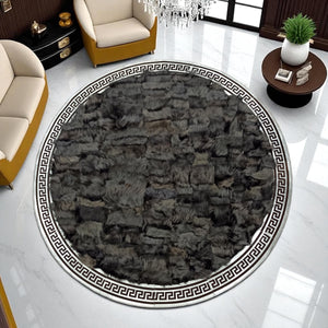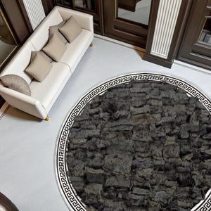 Koyu Gri Bordürlü Lüks Toskana Derisi Halı