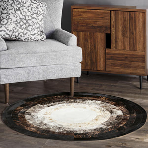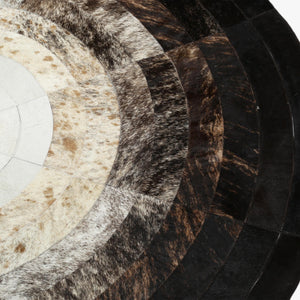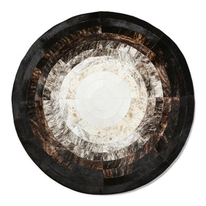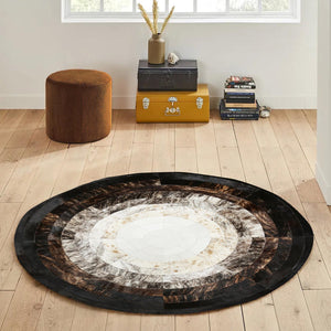 Siyah Beyaz Yuvarlak Dana Derisi Halı – El Yapımı Doğal ve Şık Salon Halısı