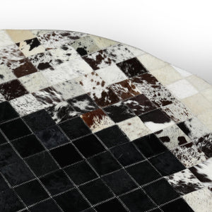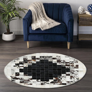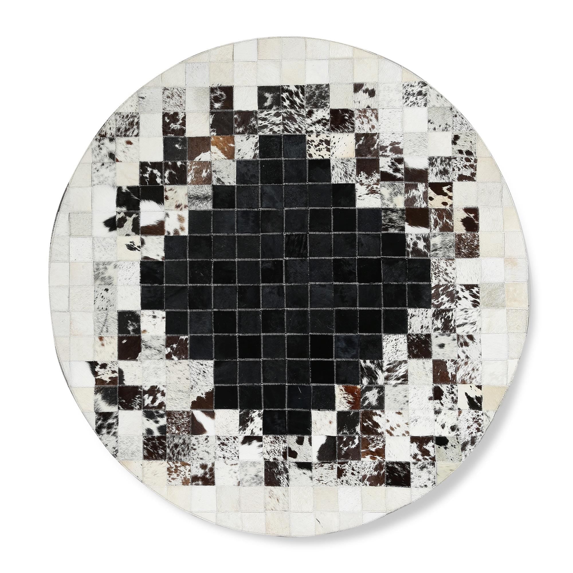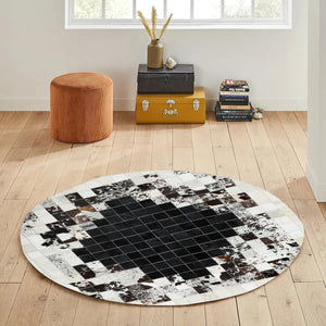 Siyah ve Beyaz Yuvarlak Dana Derisi Halı - Lüks Kaymaz Mutfak Halısı
