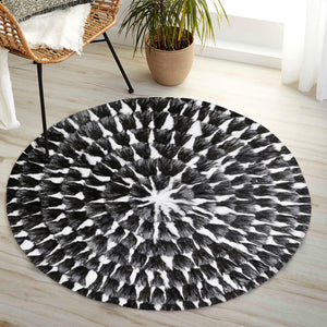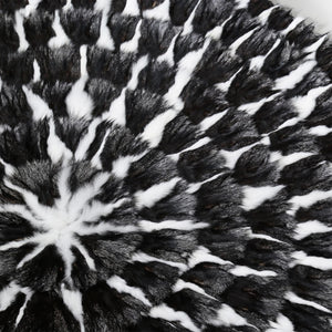 Yuvarlak Siyah Beyaz Tilki Kürkü Halı – El Yapımı Doğal Kürk Halı, Lüks Dekoratif Yuvarlak Salon Halısı