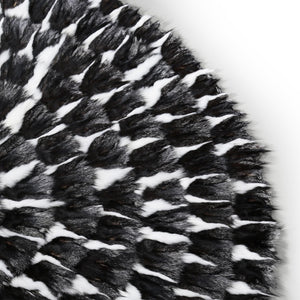 Siyah ve Beyaz Tilki Kürkü Yuvarlak Shaggy Halı, özenle seçilmiş gerçek tilki kürkünden üretilmiş yuvarlak bir tasarıma sahiptir. Zarif görünümü ve yumuşak yapısıyla dikkat çeker.