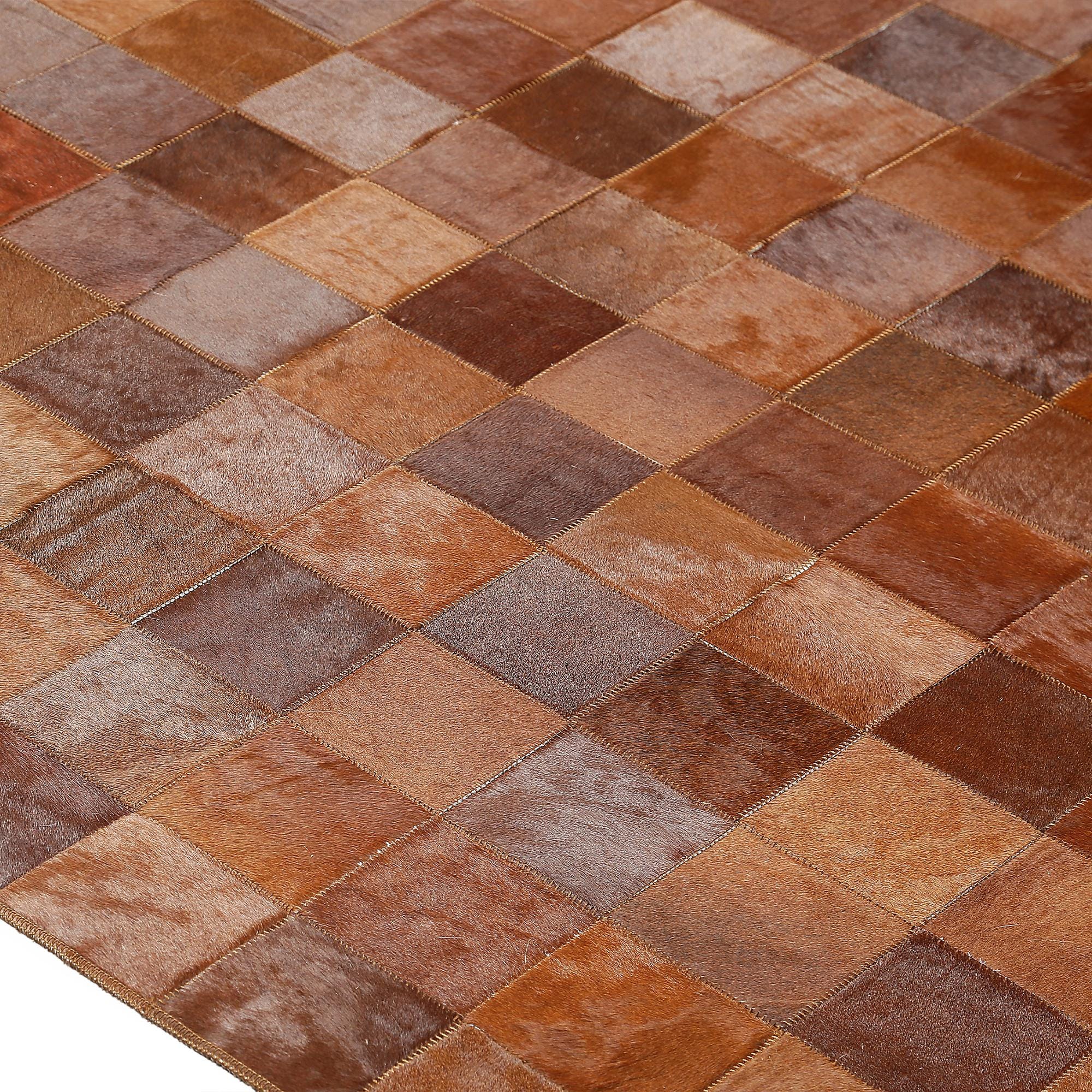 Kırmızı Geçişli Dana Derisi Patchwork Halı