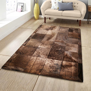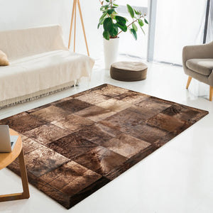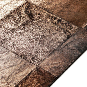 Bronz Parlak Patchwork Dana Derisi Halı | El Yapımı Hakiki Deri Lüks Halı