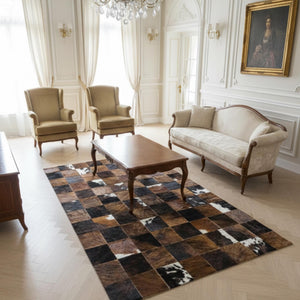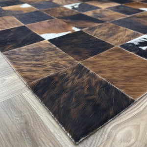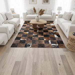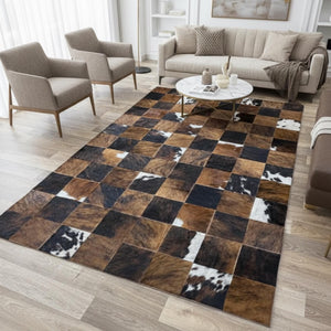 Kahverengi ve Siyah Tonlu Dana Derisi Patchwork Halı