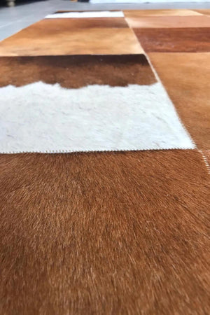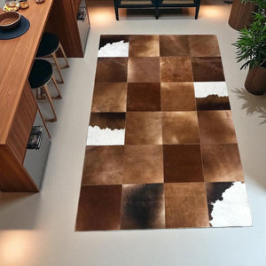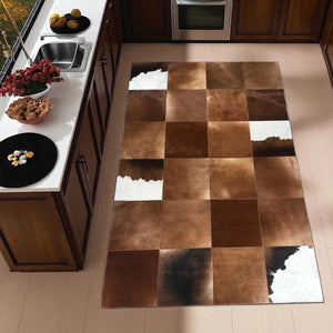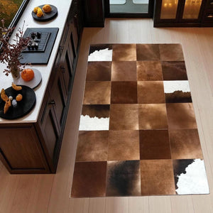 El Yapımı Kahverengi Beyaz Halı – Dana Derisi Şık Mutfak Halısı