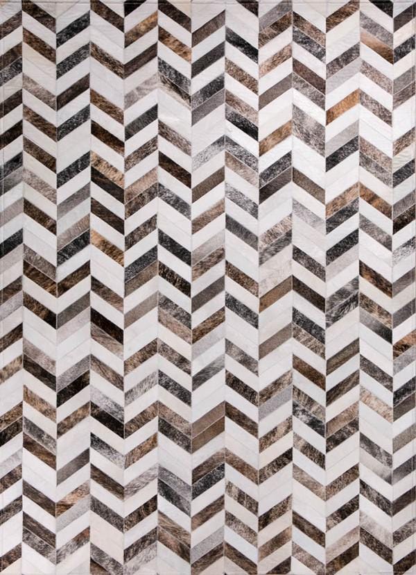 Beyaz Desenli Doğal Dana Derisi Patchwork Halı