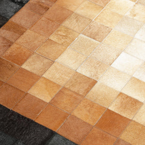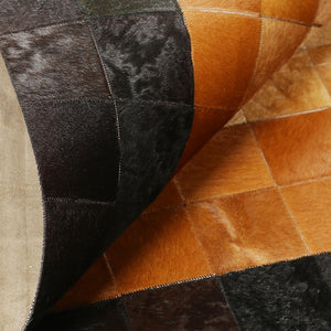 Kahverengi Bej Siyah Dana Derisi Patchwork Halı – El Dokuma Hakiki Deri Dekoratif Salon Halısı