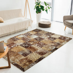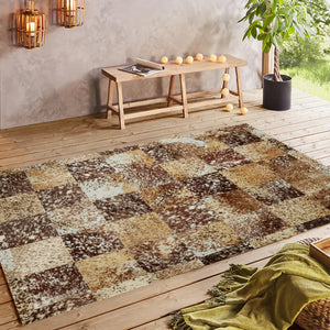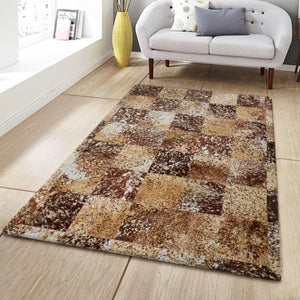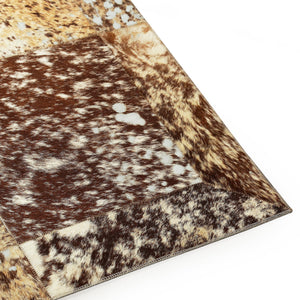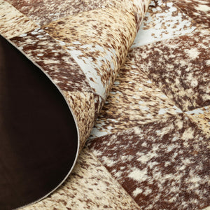 Kahverengi Doğal Dana Derisi Patchwork Halı – El Yapımı Şık Salon Halısı