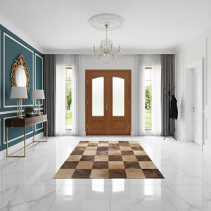 Açık ve Koyu Kahverengi Tonlu Dana Derisi Patchwork Halı