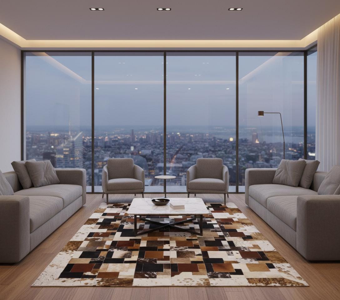 Doğal dana derisi kullanıldığı için her üründe desen, ton ve doku farklılıkları görülebilir. Bu özellik her halının kendine özgü olmasını sağlar.