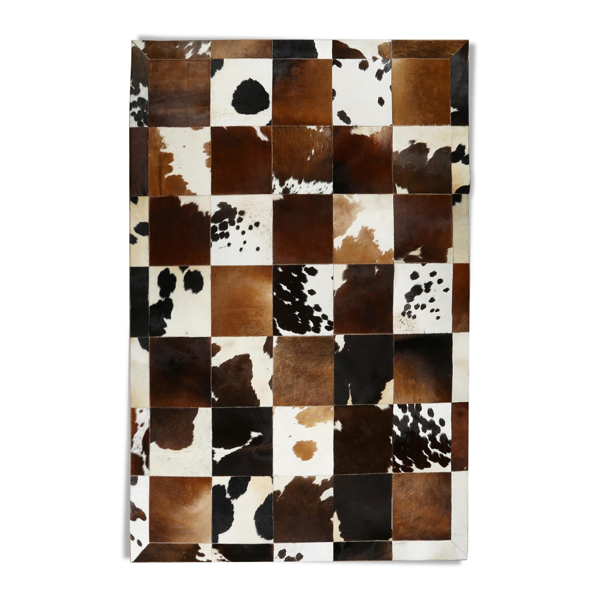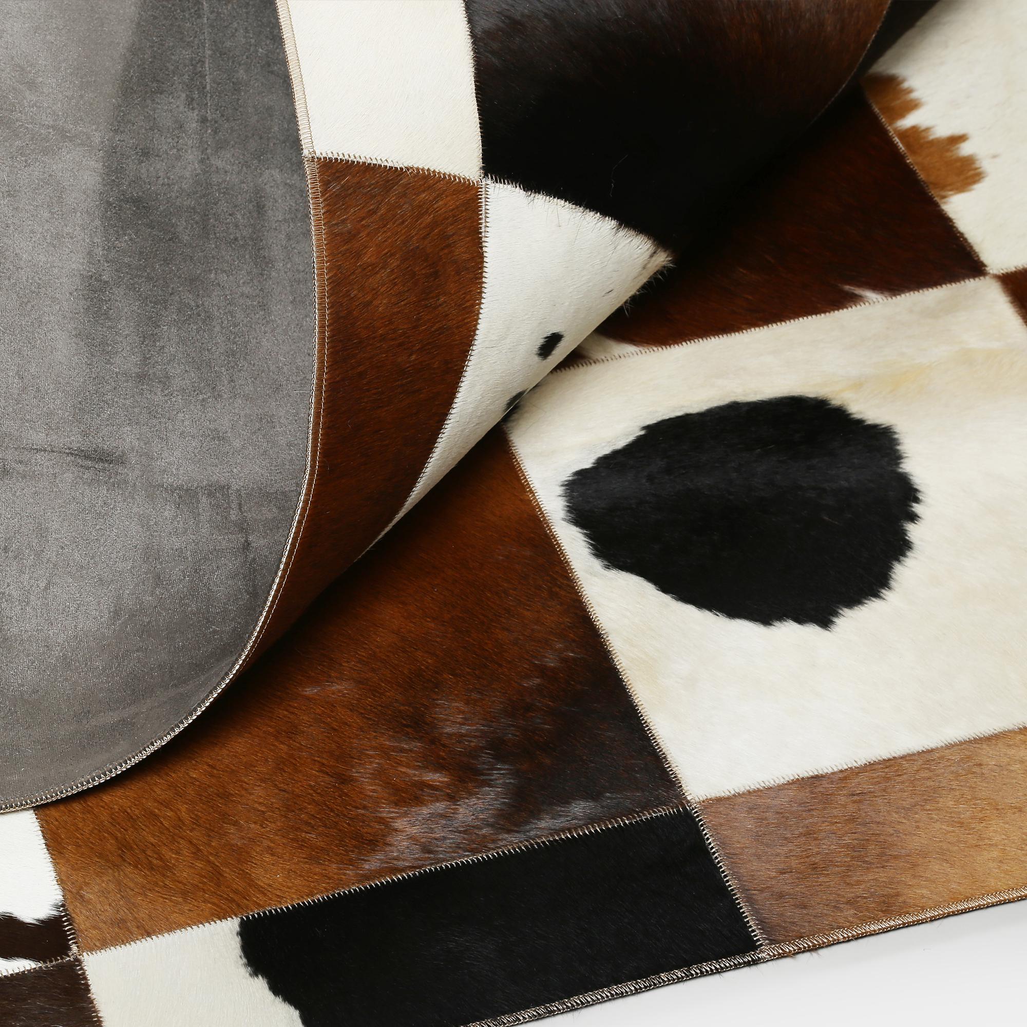 Kahverengi & doğal tonlara sahip bu dana derisi halı, doğal dokusu ve şık görünümüyle dikkat çeker.