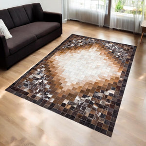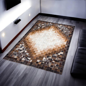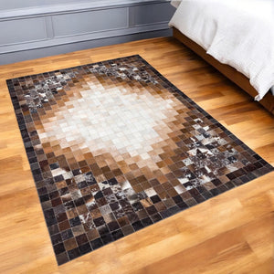 Kahverengi, Doğal Dana Derisi Patchwork Halı