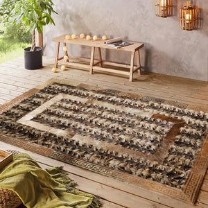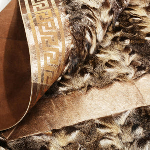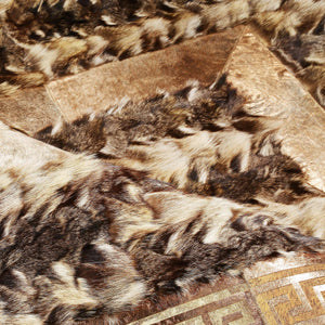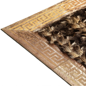 Altın Çerçeveli Kahverengi Tilki Kürkü Halı yumuşak dokusu ve dikkat çekici renk geçişleriyle yaşam alanlarınıza lüks bir dokunuş katar. Özenle seçilmiş gerçek tilki kürkünden üretilmiştir.