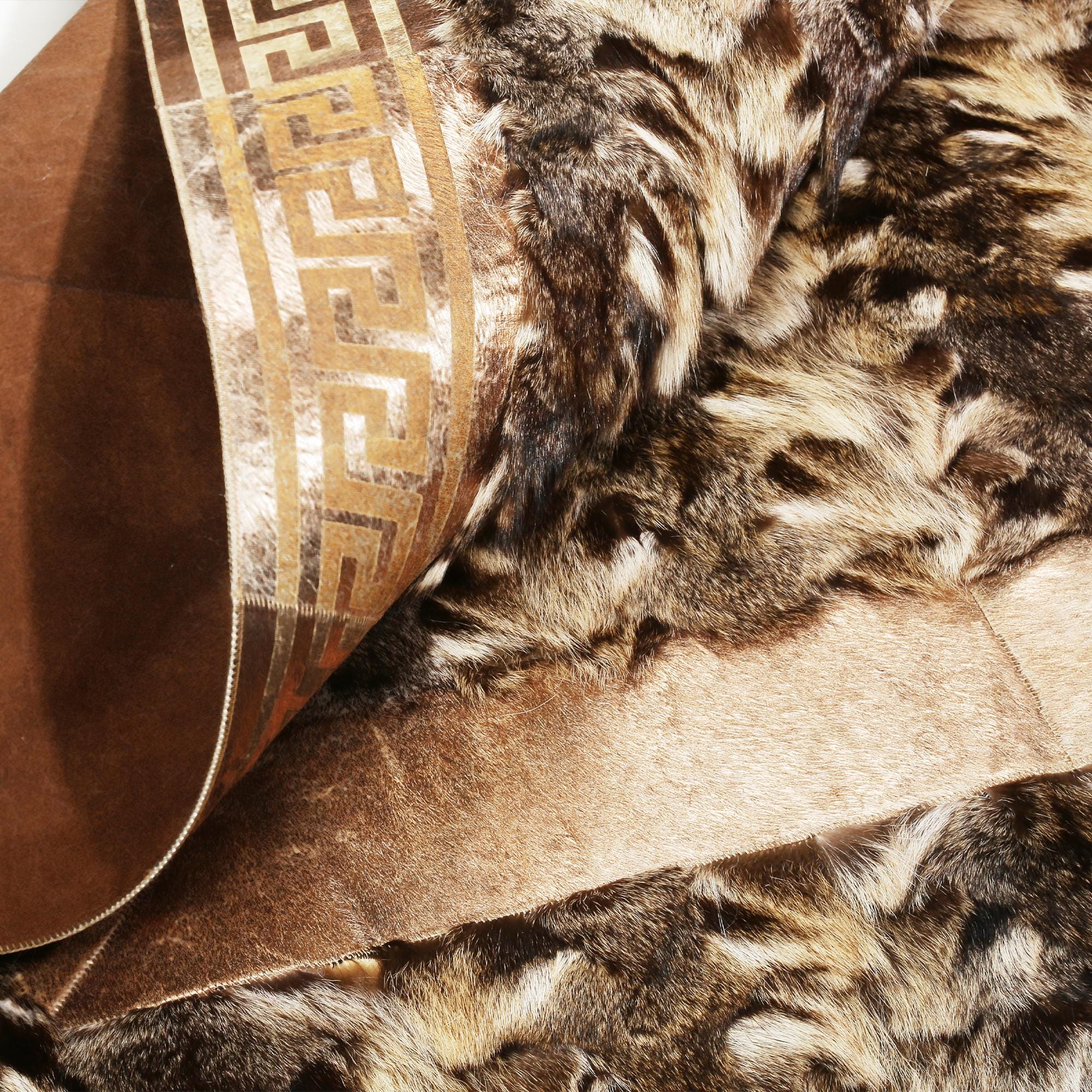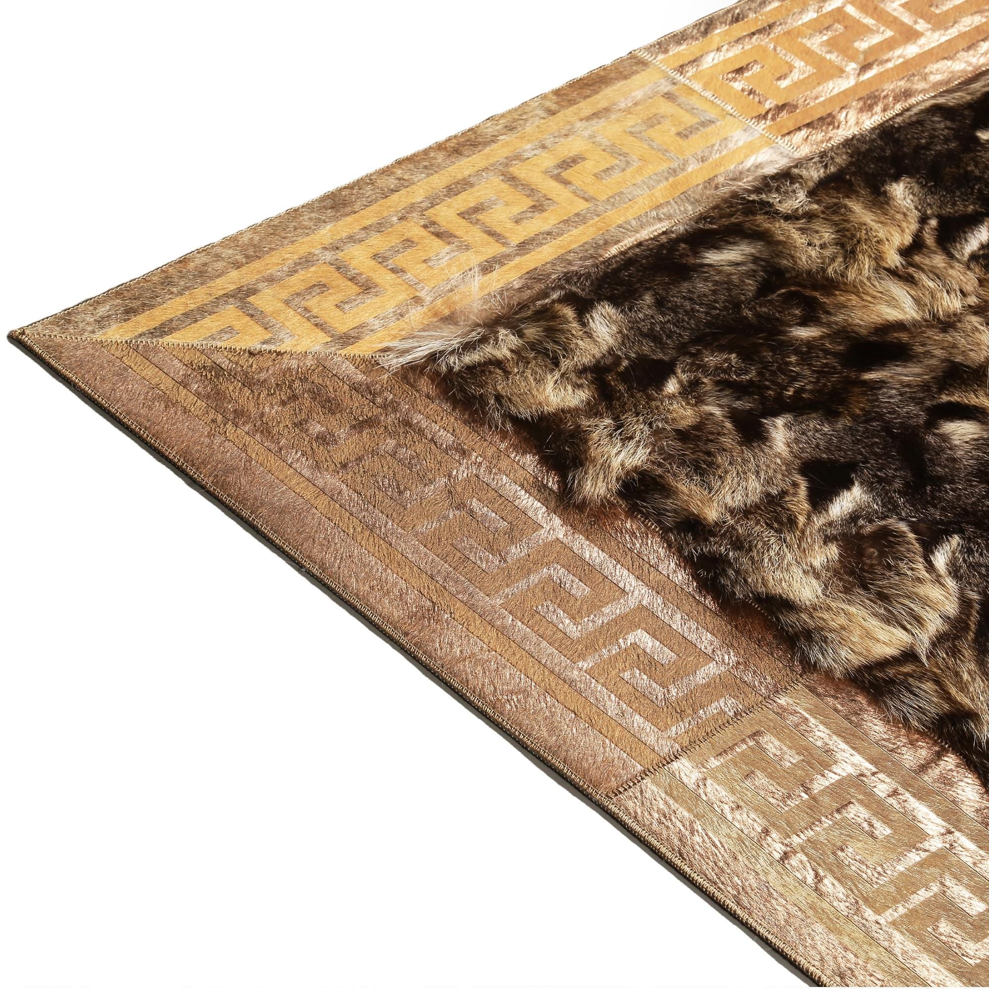 Kahverengi Altın Çerçeveli Tilki Kürkü Halı – El Yapımı Doğal Kürk Salon Halısı