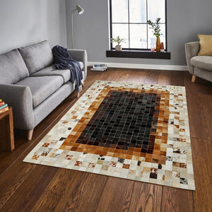 El Dokuma Kahverengi Hakiki Deri Salon Halısı